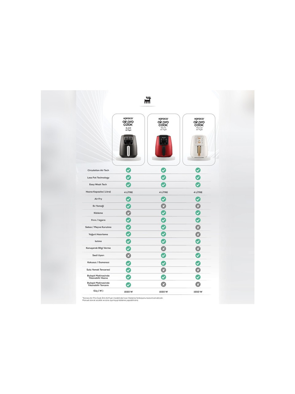 Sonuç: Karaca Air Pro Cook 3 in 1 XL Airfryer; klasik airfryer’lara göre daha fazla fonksiyon sunan, hem pratik hem de çok amaçlı kullanım isteyenler için ideal bir mutfak yardımcısıdır.