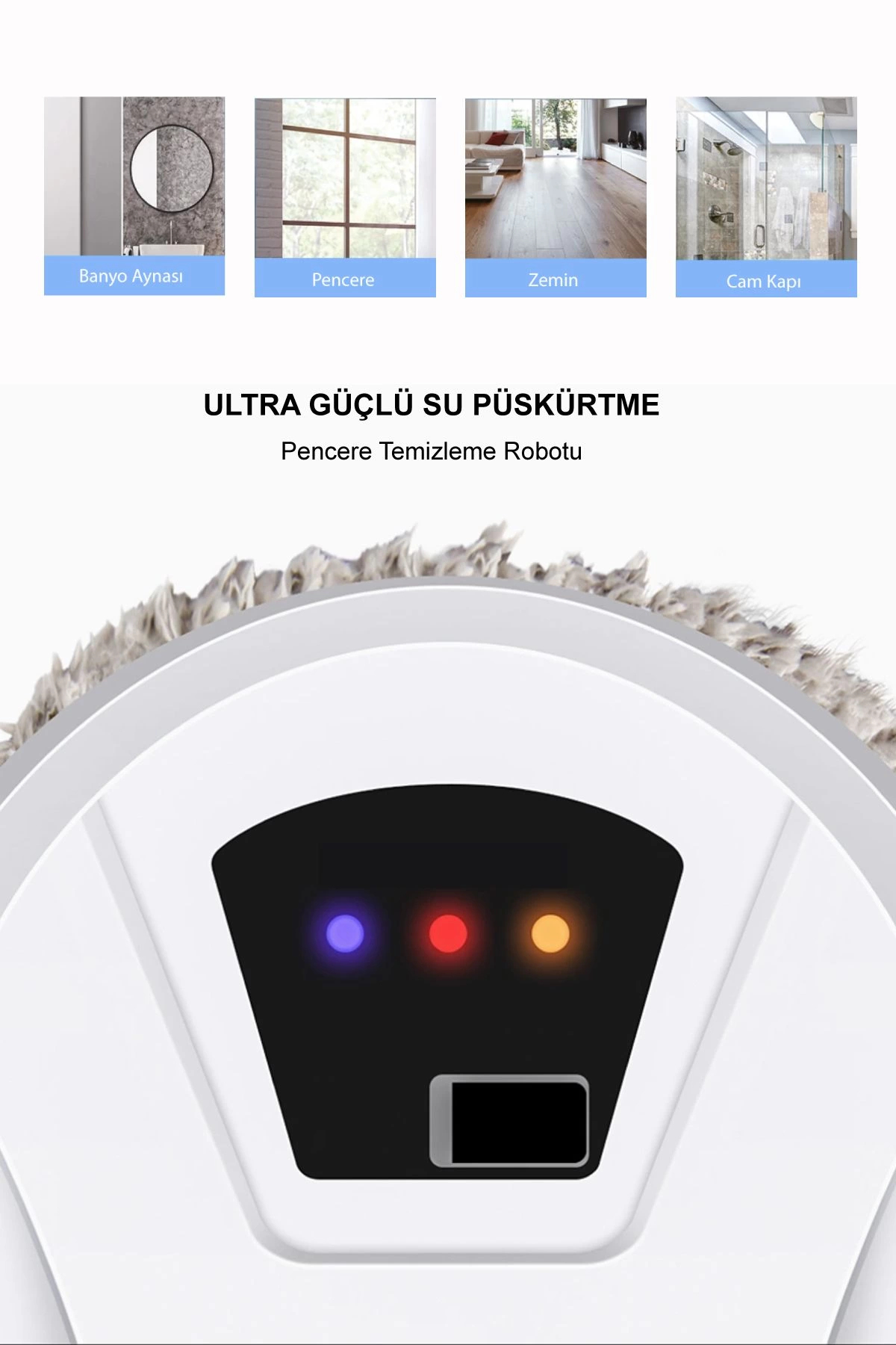 Geniş Kullanım Alanı: Cam yüzeylerin yanı sıra fayans gibi yüzeyleri de temizleyebilir. Cam kalınlığının bir önemi yoktur.