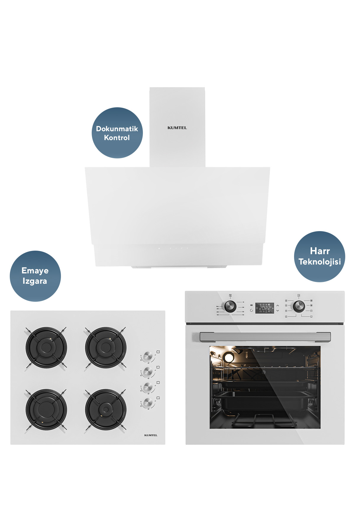 KUMTEL Ankastre Set Beyaz Cam 8 Programlı Dokunmatik