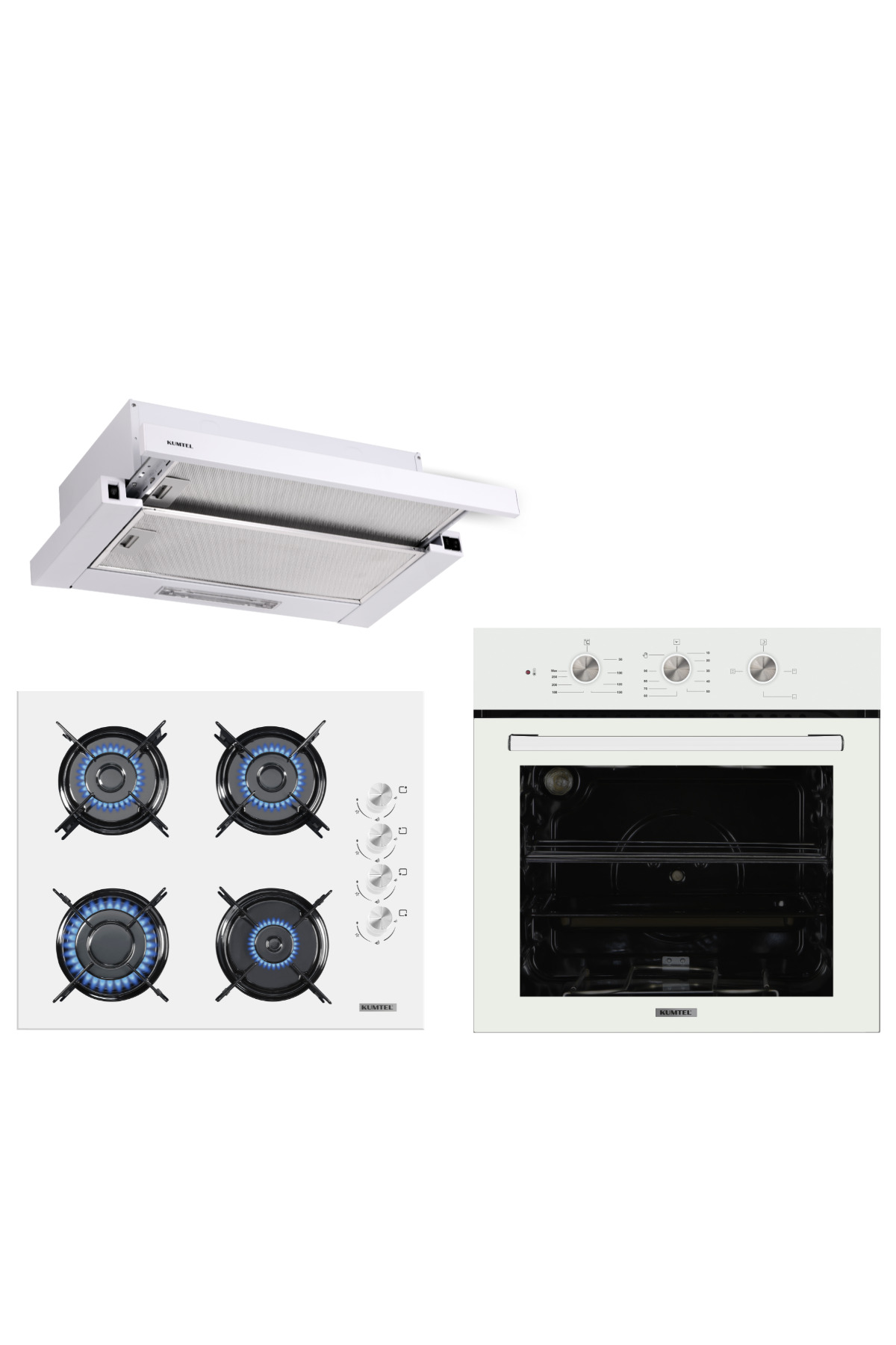 KUMTEL Beyaz Aspiratörlü Dizayn Ankastre Set