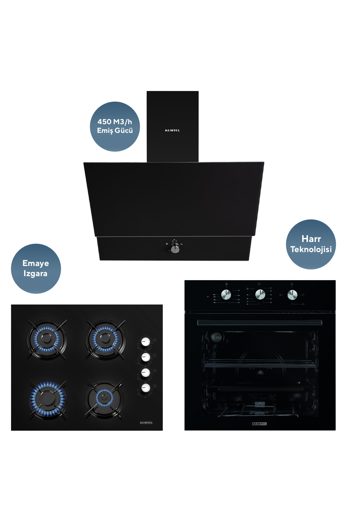 KUMTEL DİZAYN SİYAH CAM ANKASTRE SET (MT) (3 PRO 3 DÜĞ)SİYAH CAM FIRIN A+ enerji sınıfı