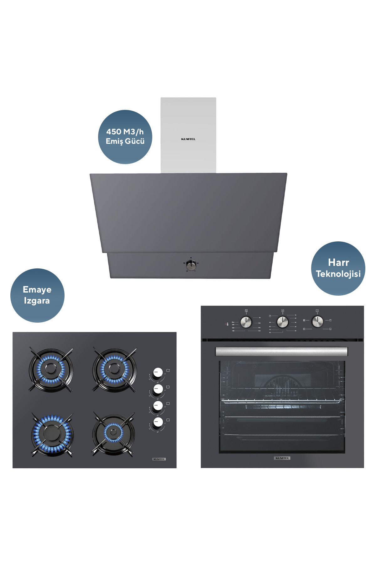 KUMTEL Kristal Antrasit Gri Cam Ankastre Set