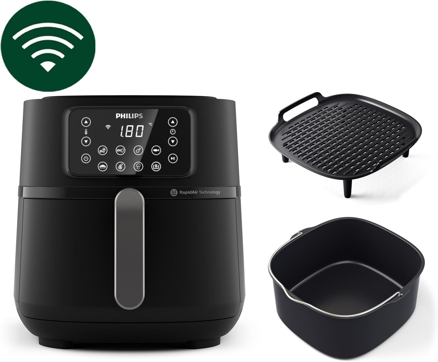 Philips HD9285/96 Connected 5000 Serisi 7.2 lt Siyah Airfryer, geniş kapasitesi, akıllı bağlantı özellikleri ve çok yönlü pişirme fonksiyonları ile sağlıklı yemekleri zahmetsizce hazırlamanızı sağlayan üst segment bir sıcak hava fritözüdür. Rapid Air teknolojisi sayesinde yiyecekleri az ya da hiç yağ kullanmadan pişirir ve klasik kızartmalara göre daha hafif sonuçlar sunar.