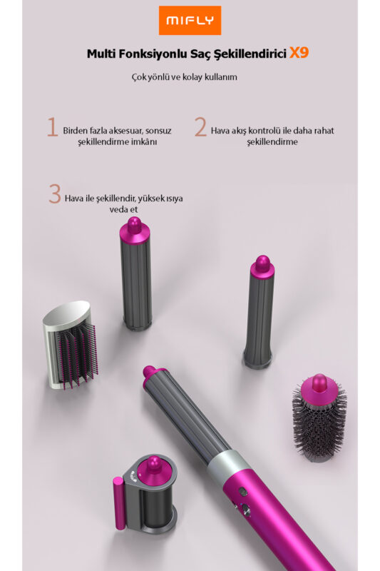 YUES 6’sı 1 Arada Air Styler Saç Şekillendirici | Otomatik Bukle + Fön + Düzleştirme Negatif İyon